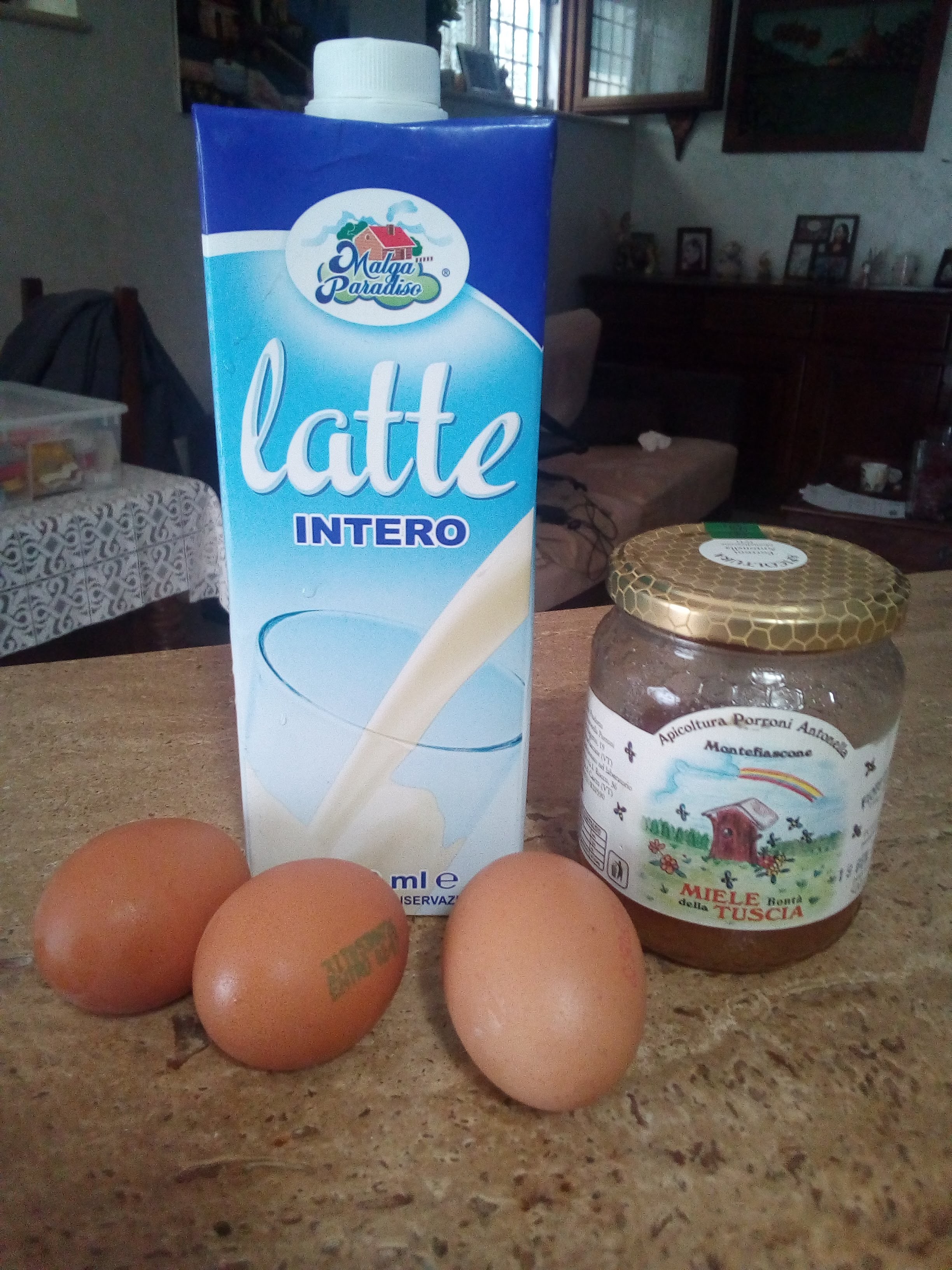 Gli ingredienti sono pochi, semplici e che tutti noi sicuramente abbiamo sempre in cucina. Latte, uova, miele e pepe.