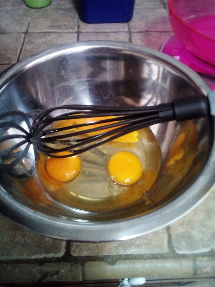 2- Sbattiamo le uova con un frusta, delicatamente.