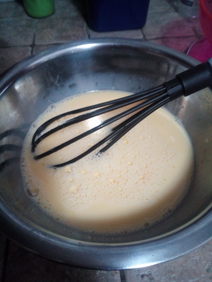 3- Uniamo alle uova il latte con il miele e mischiamo delicatamente.