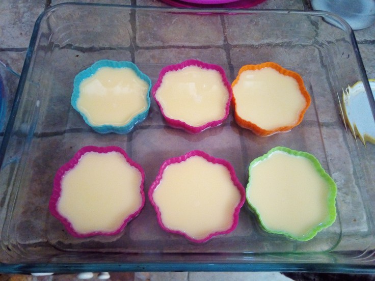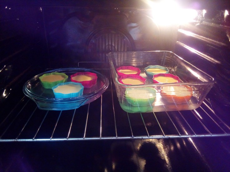 5- Inseriamo i pirottini, o lo stampo, in una pirofila più grande con all’interno dell’acqua calda fino a coprire metà dell’altezza dei pirottini.
