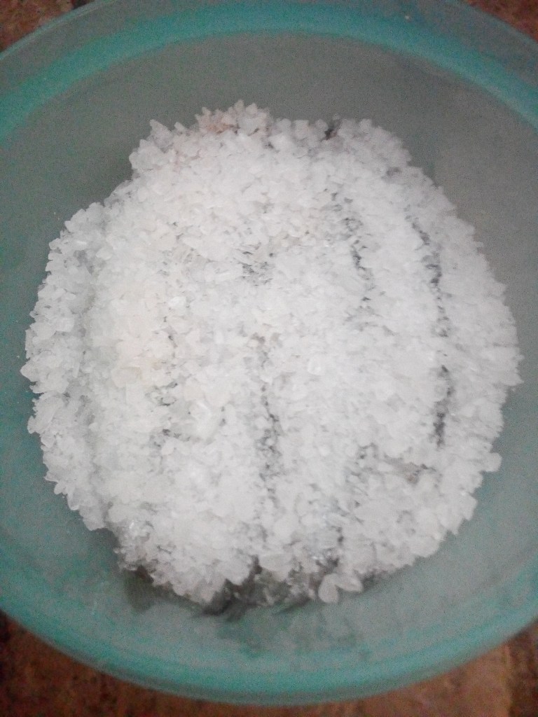 E il terzo strato è composto da sale, a ricoprire tutto il pesce. Io ho usato quello grosso.