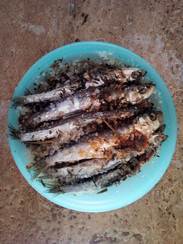 Sul letto di erbe ho adagiato alcune sardine e alici.