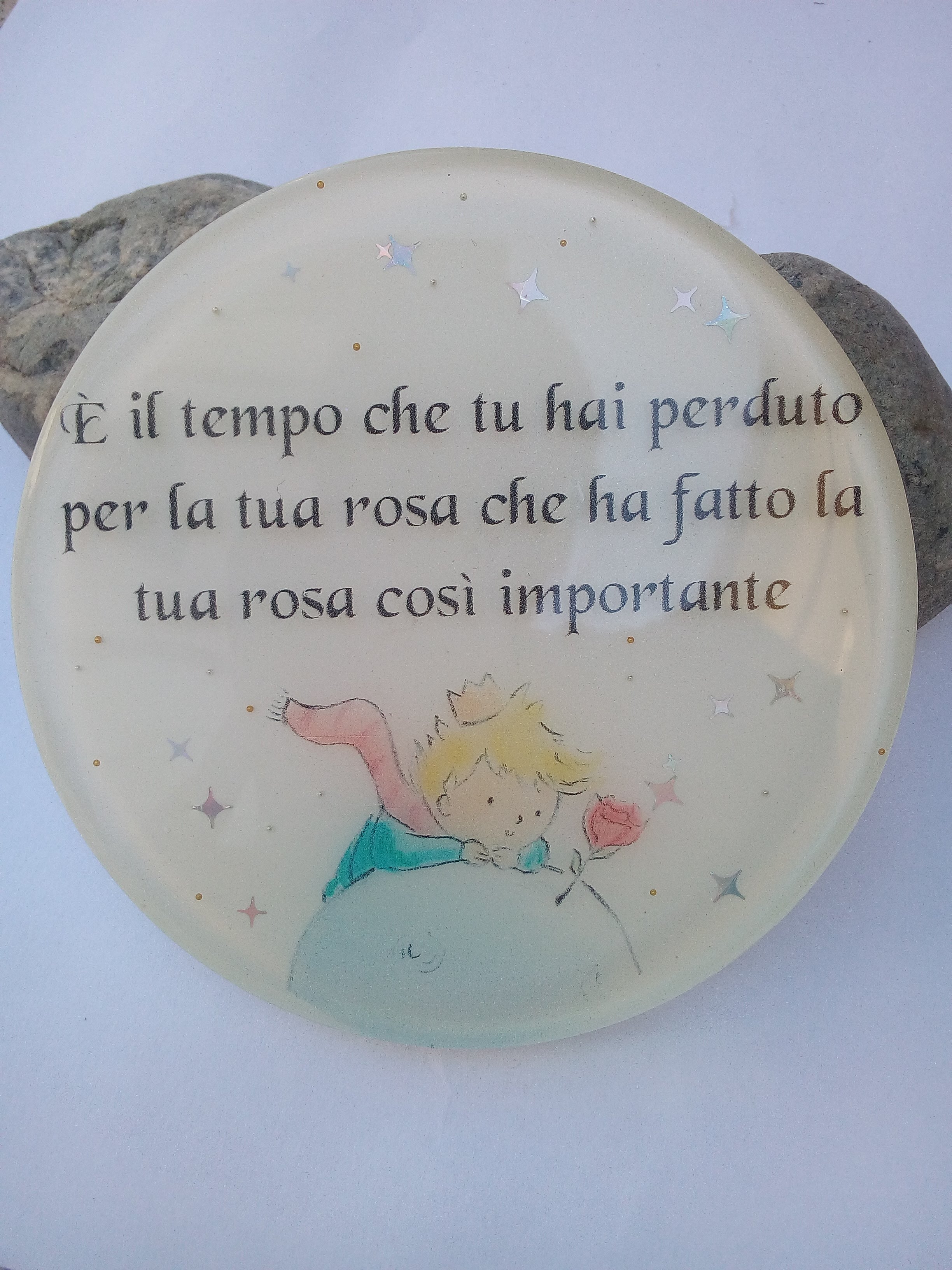 Oggetto terminato: se lo desiderate contattatemi in privato. Bellissimo sottobicchiere con una frase presa dal piccolo principe e un immagine davvero bellissima. Per tutti gli appassionati della lettura, delle bevande calde e del libro.